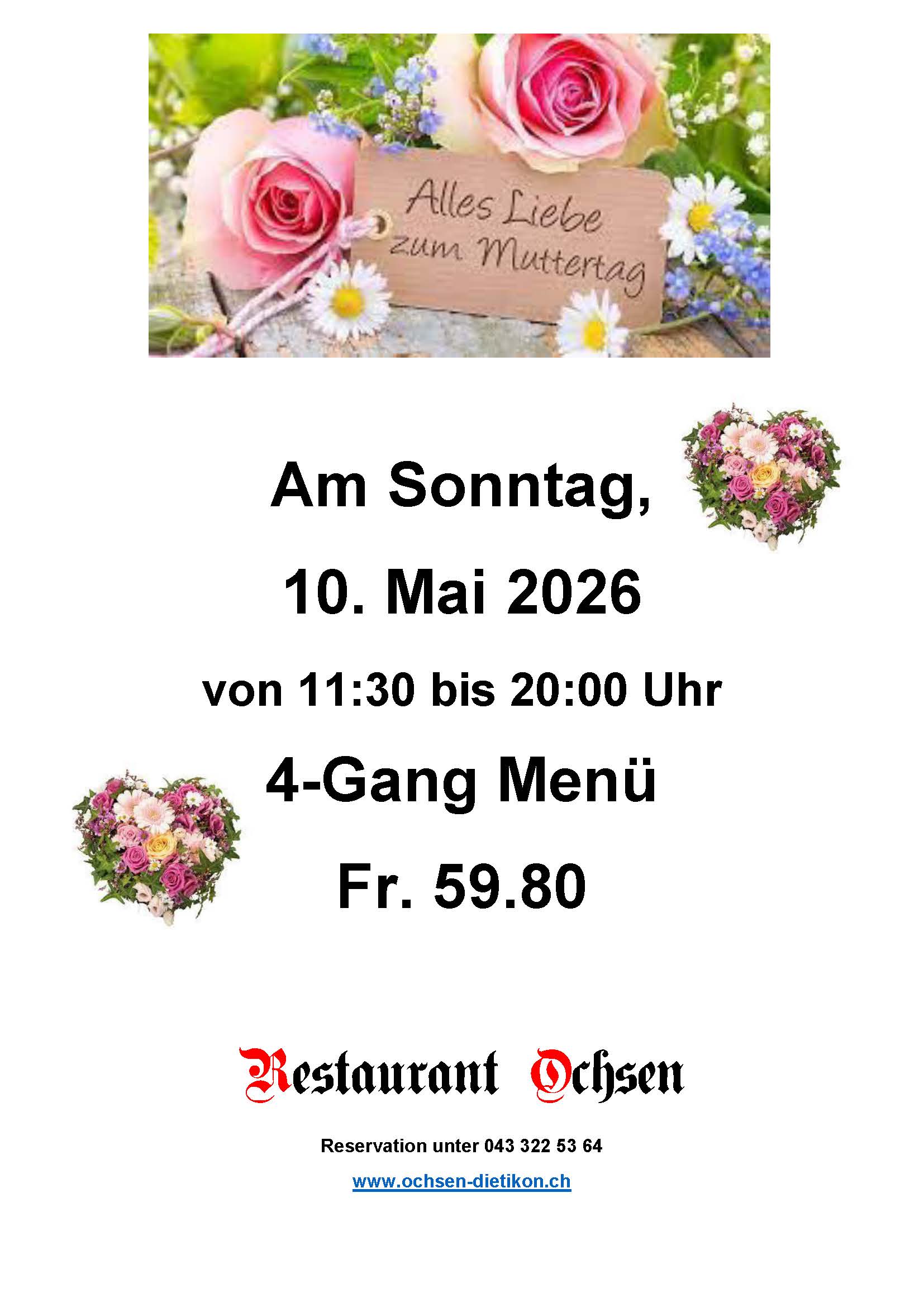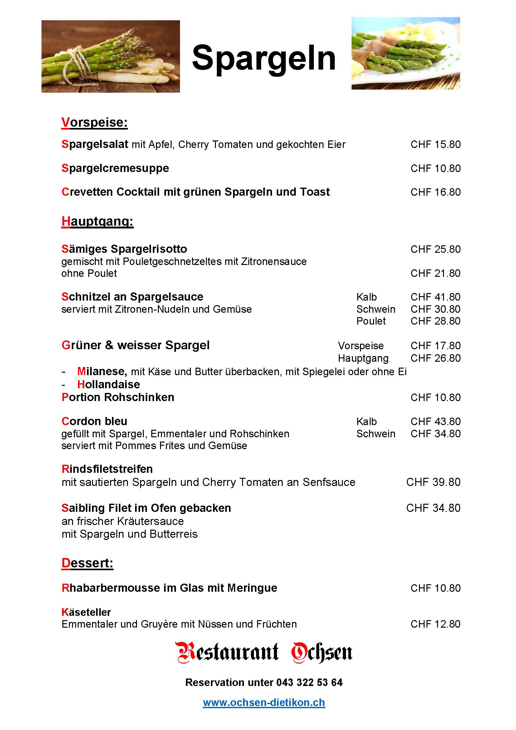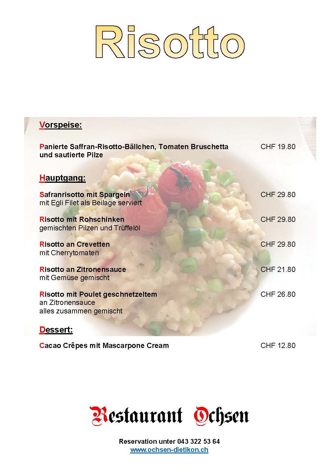 Wählen Sie aus unserer Karte eine Vorspeise, ein Hauptgang und ein Dessert für nur CHF 53.80.